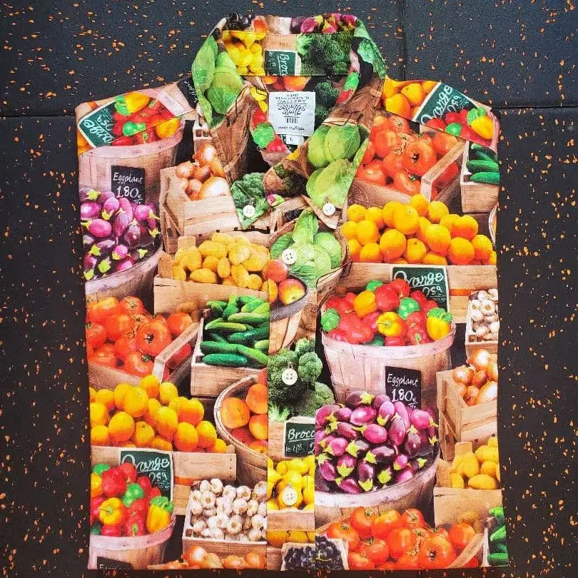 몇 년 전에 한눈에 반해 구매했습니다. 이 셔츠에 끌린 당신은 분명 멋진 센스의 소유자일 거예요!^^ 과일 패턴의 컬러풀한 반팔 셔츠. - 디자인: 과일 패턴 - 색상: 멀티 컬러 - 타입: 긴팔 셔츠 - 버튼: 앞면 버튼 포함 방문해 주셔서 감사합니다!