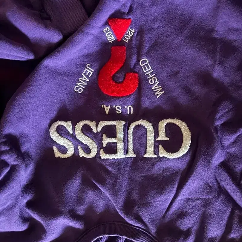 퍼플 GUESS 맨투맨, 자수 로고와 워시 가공이 특징. - 브랜드: GUESS - 색상: 퍼플 - 디자인: 자수 로고 - 스타일: 맨투맨 - 특징: 워시 가공 방문해 주셔서 감사합니다. 색상 - 퍼플 계열