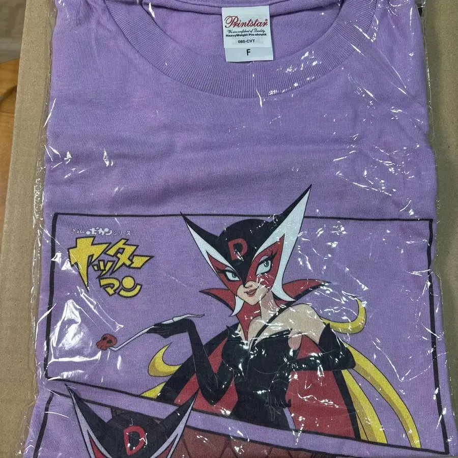 얏타맨 포카커피 50주년 기념 T셔츠 도로온죠 보라색 T셔츠 미사용 새상품이지만, 보관 시 생긴 주름 등은 있습니다.