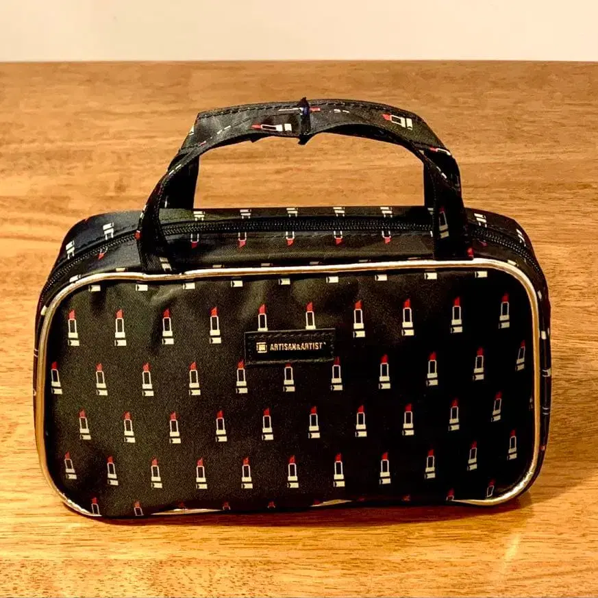 립스틱 패턴의 ARTISAN & ARTISTE 브랜드 코스메틱 파우치, 내부에 2개의 컴파트먼트가 있습니다.