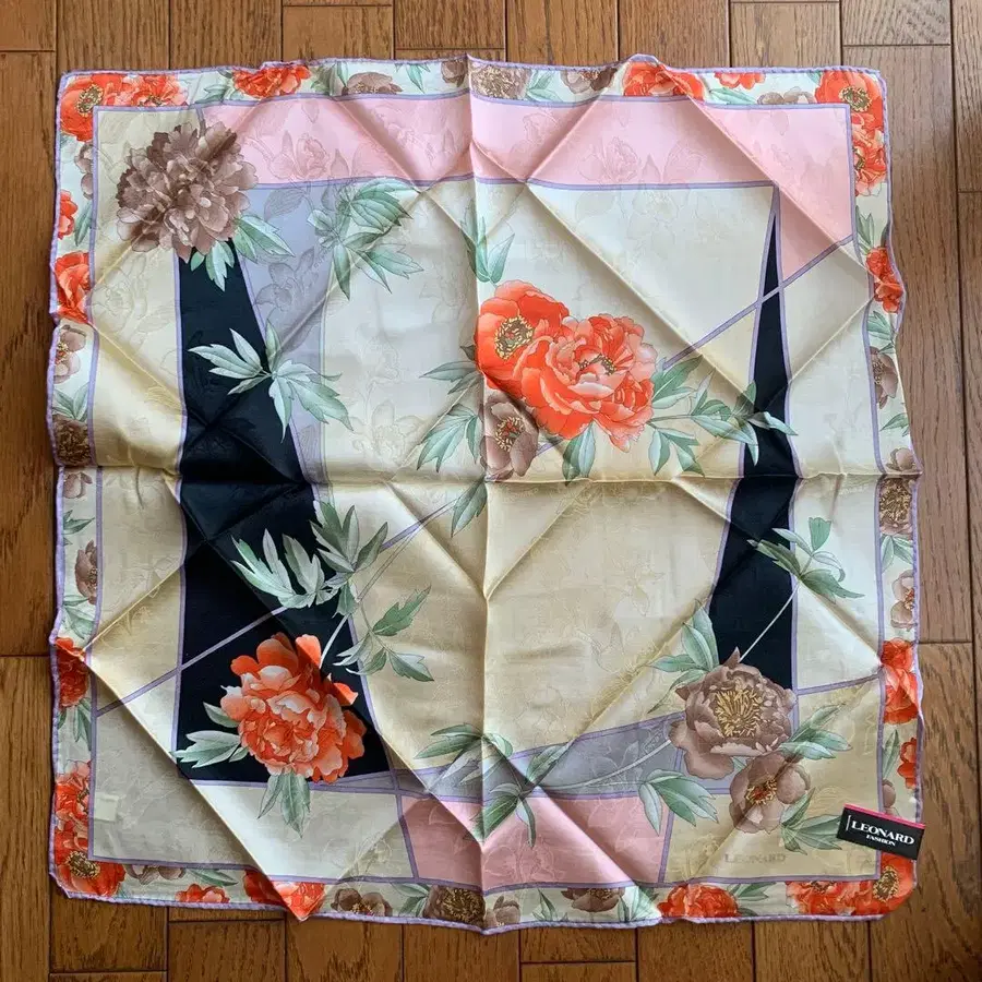LEONARD 꽃무늬 실크 스카프 블랙 택 포함 이탈리아 대형 새상품급
