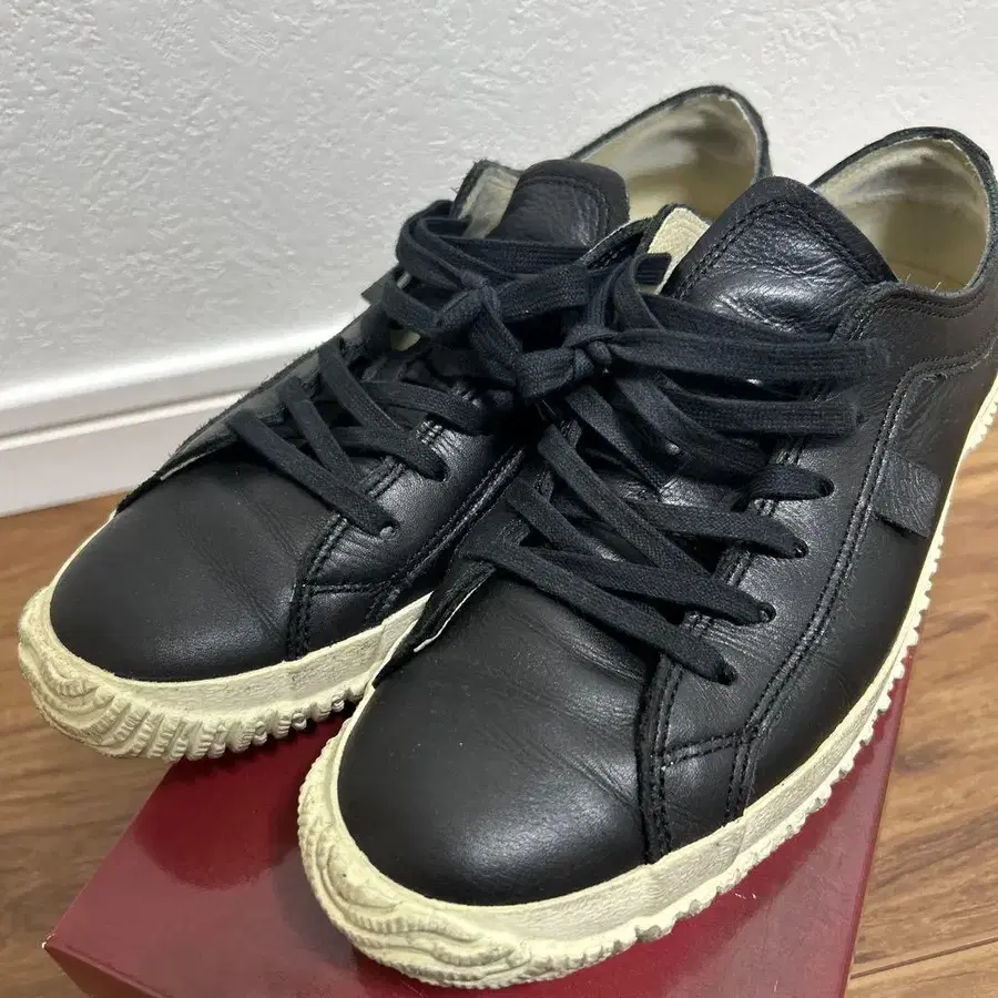 심플하고 코디하기 쉬운 블랙 x 화이트칼라, 고급 가죽을 사용한 일본제 스니커즈입니다.