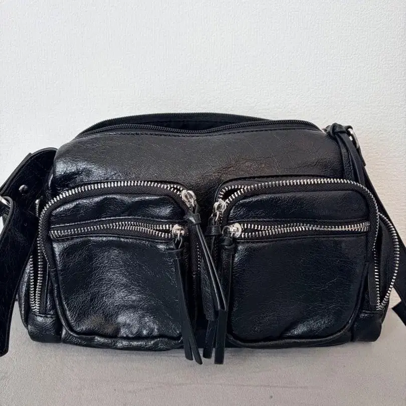 블랙 가죽 숄더백 4 포켓