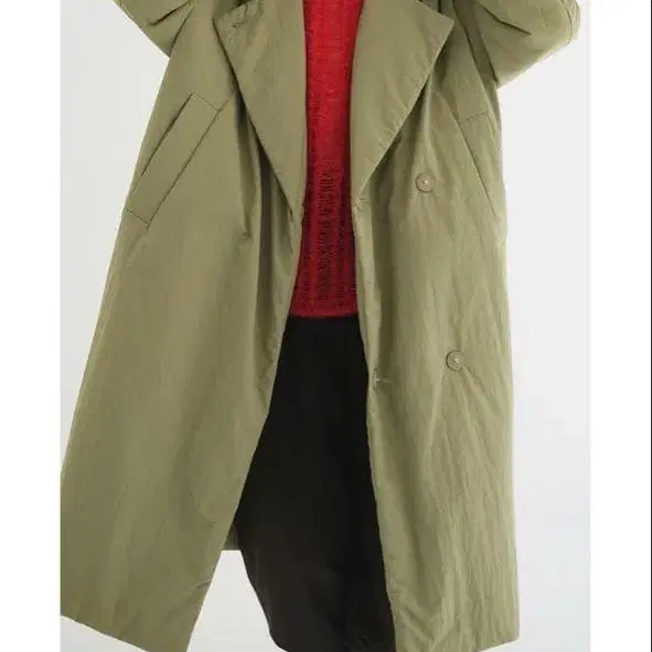 카키색 다운 체스터 코트, 스타일리시한 디자인으로 보온성이 뛰어납니다.