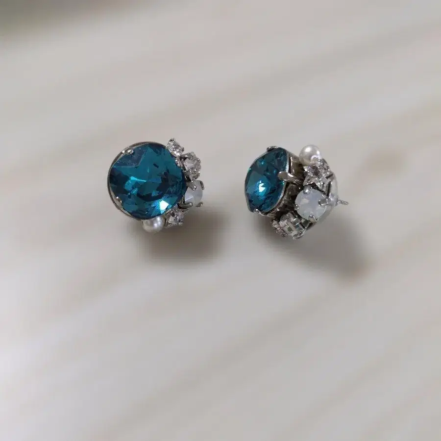 엘레강트한 귀걸이. - 색상: 파란색 - 소재: 금속, 인조석, 펄 - 스타일: 캐주얼, 엘레강트 방문해 주셔서 감사합니다. 오더로 만들어 주신 제품입니다. 블루 색상이 깔끔합니다.
