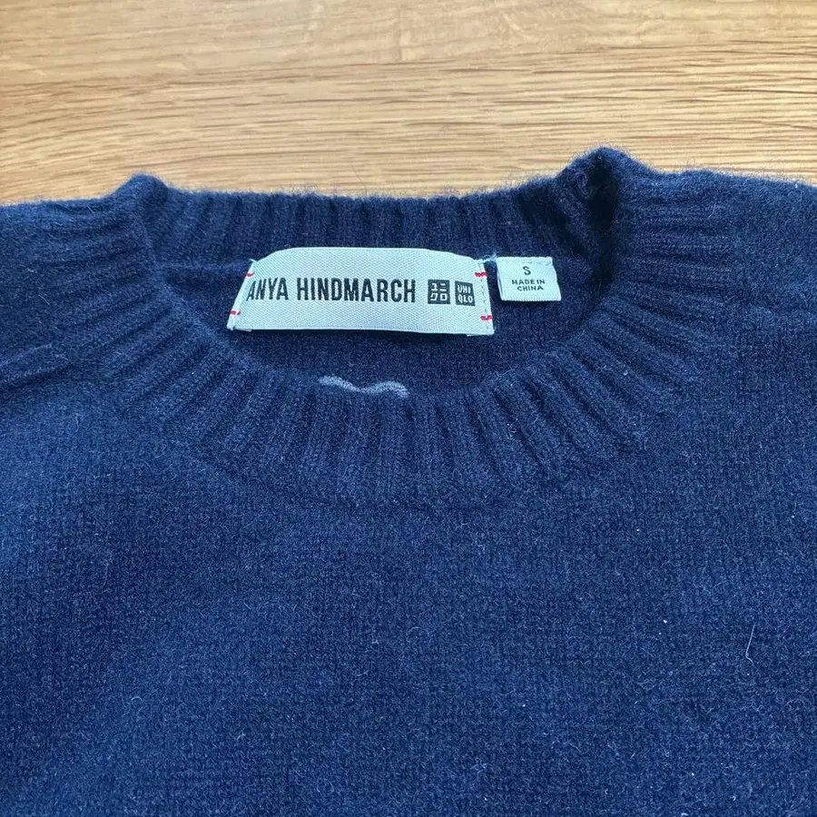 UNIQLO 작년 겨울 네이비 라운드넥 캐시미어 100% 긴팔 스웨터, 사이즈 S.