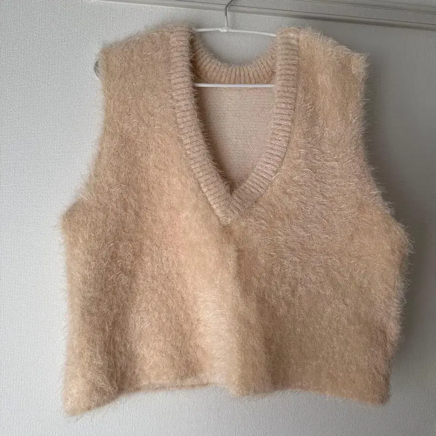 푸들 인조 모피 세미롱 베스트 베이지