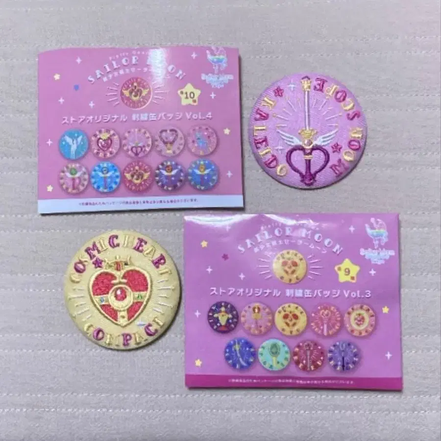 세일러문 자수 캔뱃지 Vol.3 코스믹 하트 컴팩트 Vol.4 카레이도 문 스코프 모두 내용물 확인을 위해 개봉했지만, 미사용품입니다. 낱개 판매 불가 네고 불가 #세일러문 #세일러문스토어 #자수캔뱃지