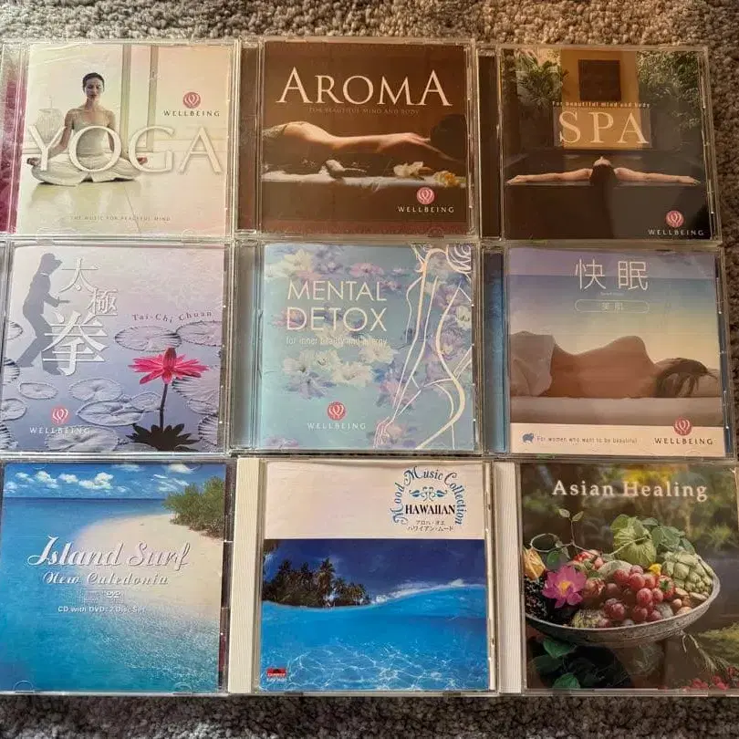 힐링, 릴랙스 뮤직 라벨 WELLBEING 시리즈 6종, 기타 힐링, 릴랙스, 자연 음악 뮤직 3종 세트입니다. 일부 단종. 모두 오비 있음.