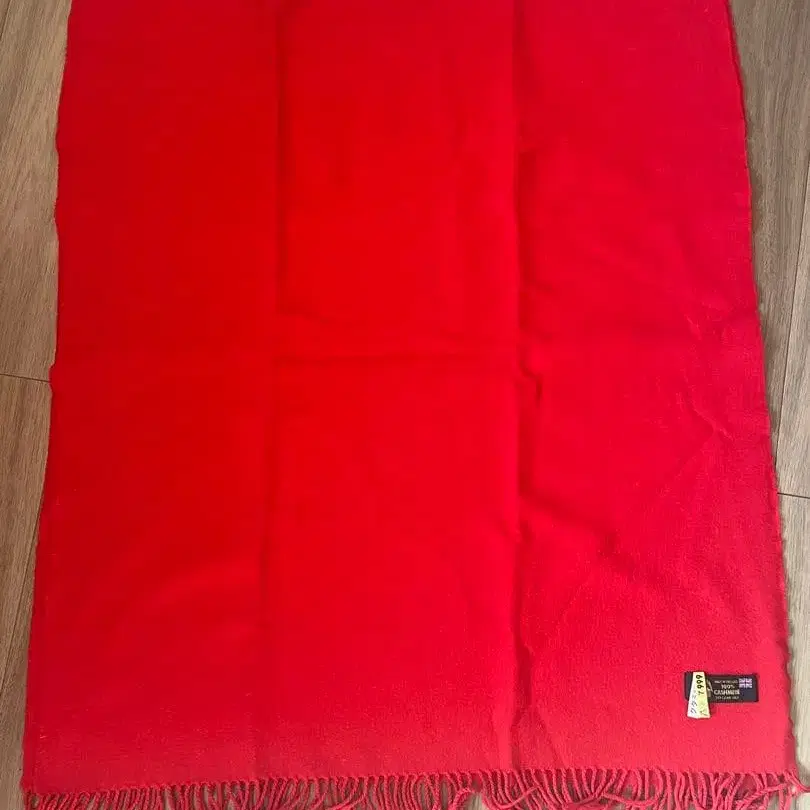 100% 캐시미어 소재의 빨간색 스톨, 영국제이며 프린지가 있습니다.