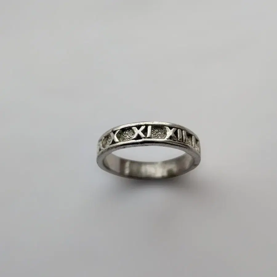 실버 슬림 반지, 로마 숫자 각인이 특징입니다. 장식적인 무늬 책상 서랍 안에서 보관했기 때문에 흠집, 오염이 있습니다. 크기 안쪽 직경 약 1mm. 폭 약 4mm. 소재는 불명.