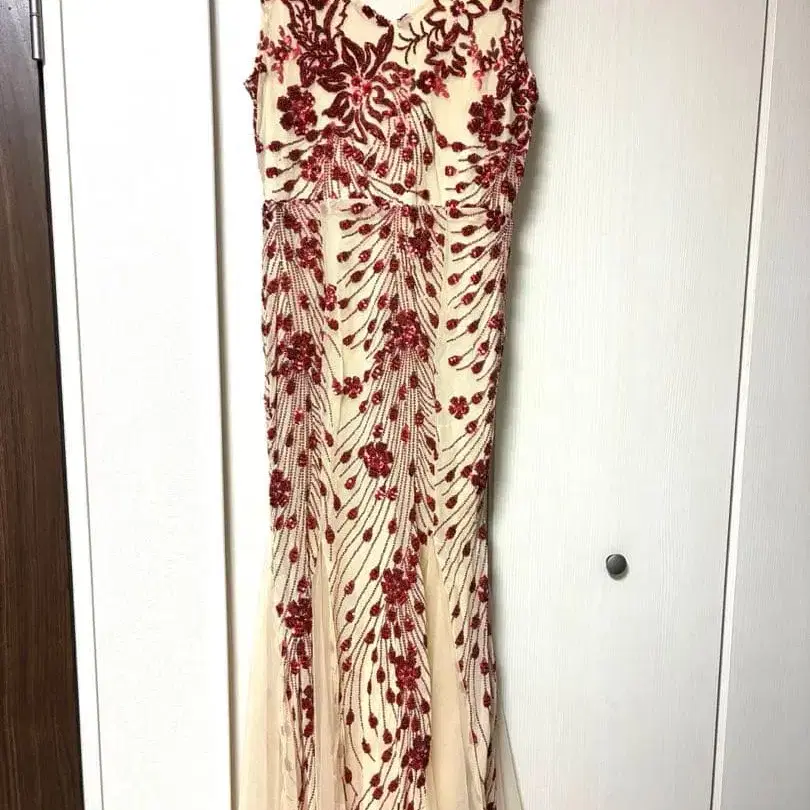 자수와 비즈 장식이 아름다운 머메이드 드레스. 새상품입니다. 입을 기회가 없어 판매합니다. - 색상: 베이지/빨간색 - 디자인: 자수 포함 - 소재: 쉬폰/비즈 - 스타일: 머메이드 라인 - 넥라인: V넥 방문해 주셔서 감사합니다. 사이즈 - XL(LL)