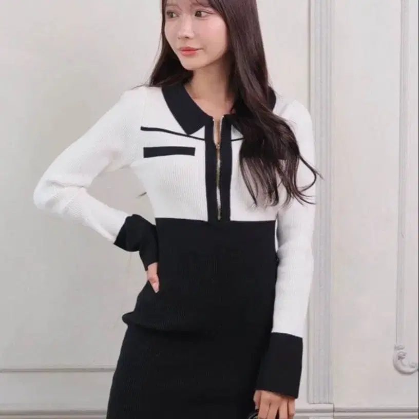립서비스 프론트 ZIP 바이카라 니트 원피스