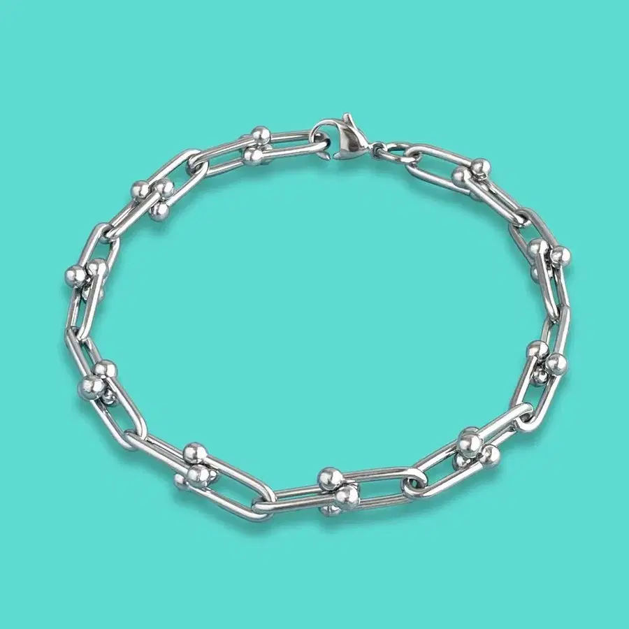 새상품, 미사용 하드웨어 U 체인 팔찌 슬림 스테인리스 소재입니다.