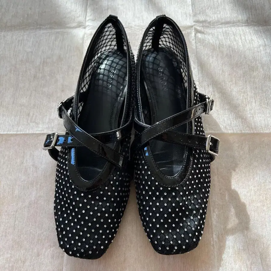 스팽글 장식의 블랙 펌프스, 크로스 스트랩 디자인으로 스타일리시합니다. - 색상: 블랙 - 디자인: 스팽글 장식 - 스트랩: 크로스 스트랩 - 밑창 상태: 사용감 있음 - 모양: 스퀘어토 방문해 주셔서 감사합니다. 사이즈 - 24.5cm ( L 사이즈 )