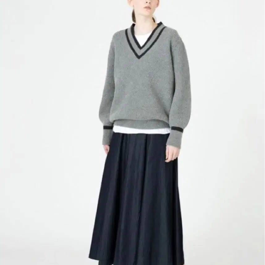 알아바일 V넥 니트 그레이