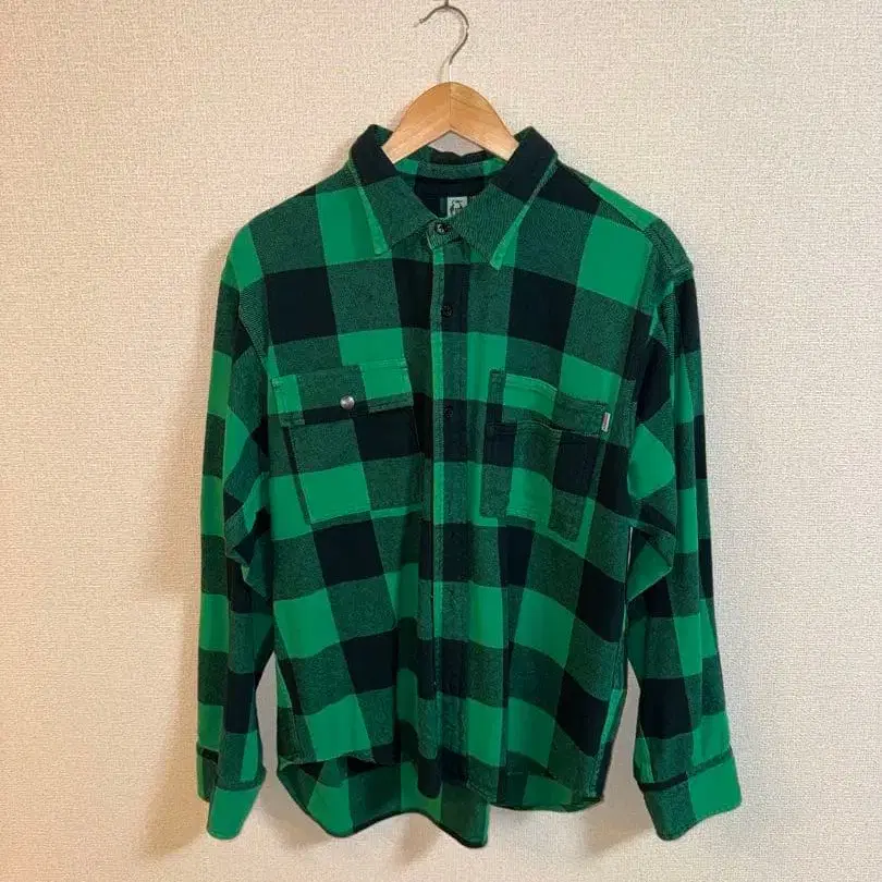 CHUMS 그린 블랙 체크 플란넬 셔츠 L 사이즈