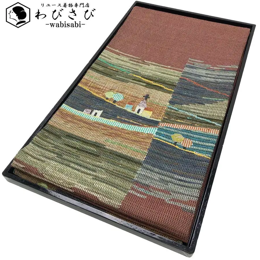 차분한 짙은 스오 색감에 나무, 교회 등의 추상적인 풍경 무늬가 디자인된 멋진 패턴의 상품입니다.