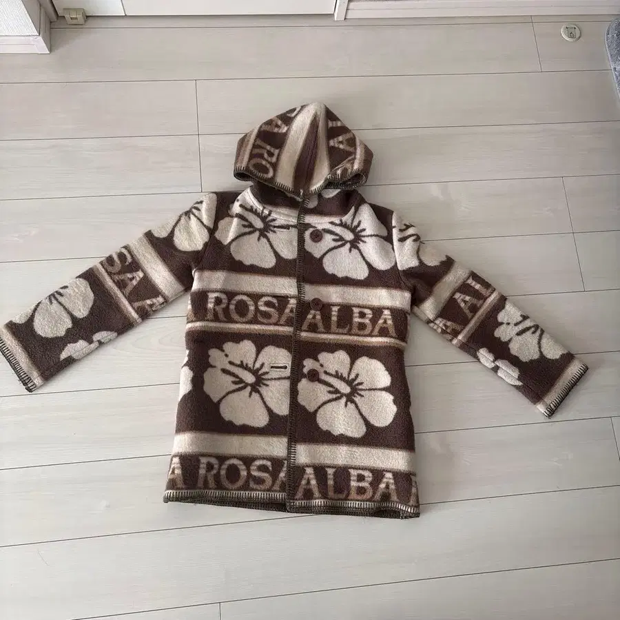 알바 로자의 플리스 코트로 색상은 브라운입니다. 앞면과 뒷면의 색상이 다른 사양입니다. 올풀림이나 벌레 먹은 곳 없이 새 상품급입니다.