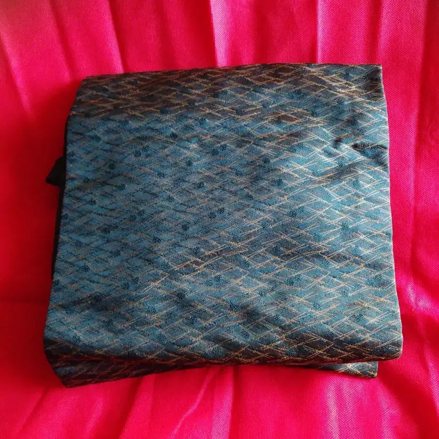 블루그린의 기하학 패턴이 아름다운 나고야 오비입니다.
