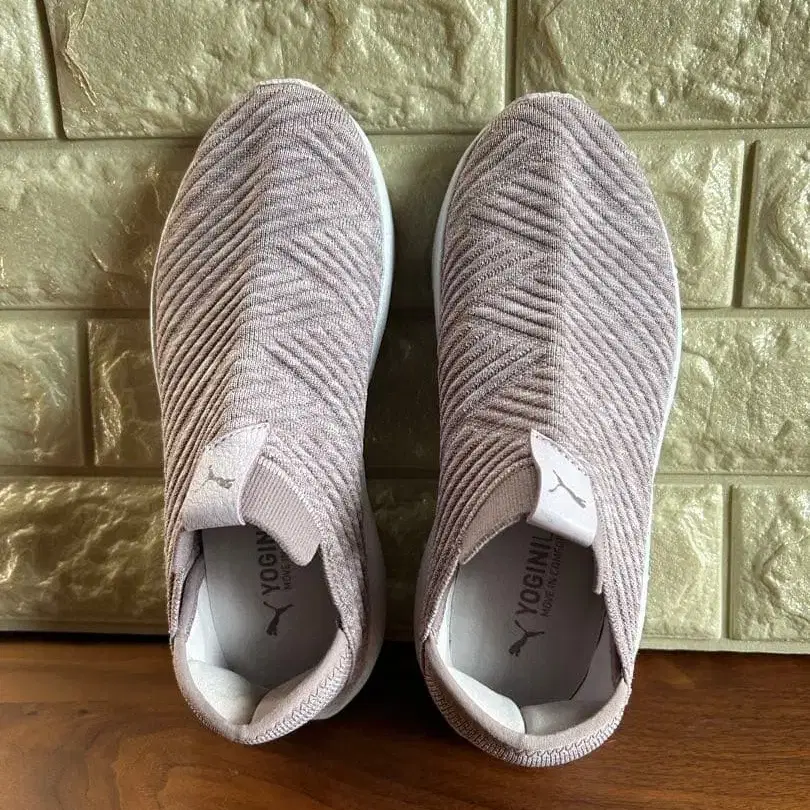 슬립온 스타일의 핑크색 스니커즈, 경량으로 쾌적한 착용감. - 브랜드: PUMA - 모델명: YOGINI - 색상: 핑크 - 디자인: 슬립온 스타일 - 소재: 합성섬유 사이즈가 맞지 않아 판매합니다.