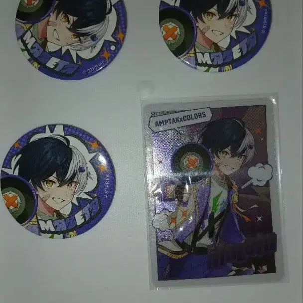 캔뱃지 1개에 녹과 같은 얼룩이 있습니다.