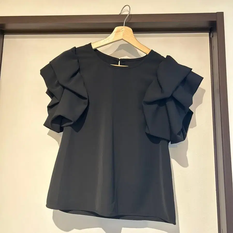 프릴 소매 디자인의 블랙 반팔 블라우스. - 색상: 블랙 - 소매 디자인: 프릴 소매 - 넥라인: 라운드넥 - 뒷모습 디자인: 버튼 - 소재: 폴리에스테르 착용 횟수 10회 정도입니다. 방문해 주셔서 감사합니다. ※ 거래, 댓글 등 소통 시 프로필을 읽어주세요 ◡ ̈