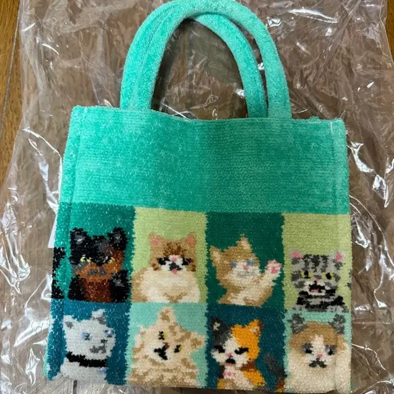 민트 그린 컬러에 고양이와 강아지 자수가 놓인 소형 핸드백. - 색상: 민트 그린 - 디자인: 고양이와 강아지 모티브 자수 - 안쪽 소재: 그린 컬러 원단 - 핸들: 2개 - 사이즈: 소형 방문해 주셔서 감사합니다.