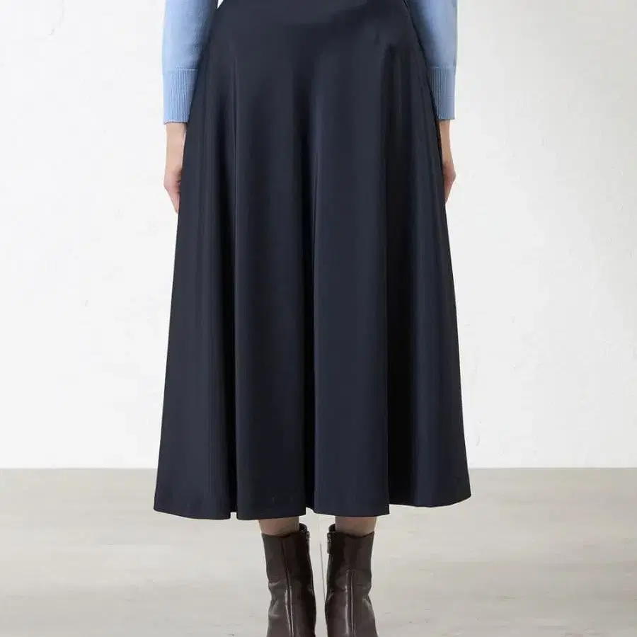 부드러운 원단의 네이비 플레어 스커트, 쾌적한 착용감.