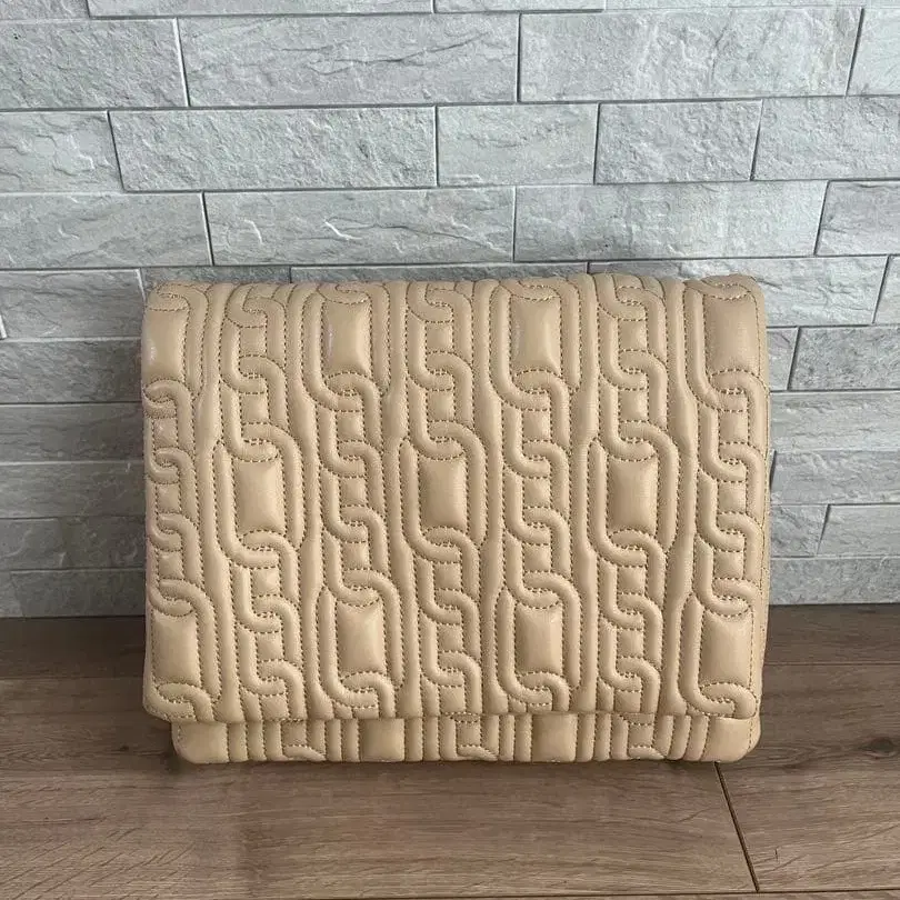 베이지 색상의 퀼팅 디자인 숄더백, 체인 스트랩 포함. 2회 사용했으나 얼룩, 긁힘 없이 깨끗한 상태입니다. 손잡이: 61cm 바닥: 6cm 높이: 23cm 너비: 28cm 방문해 주셔서 감사합니다.