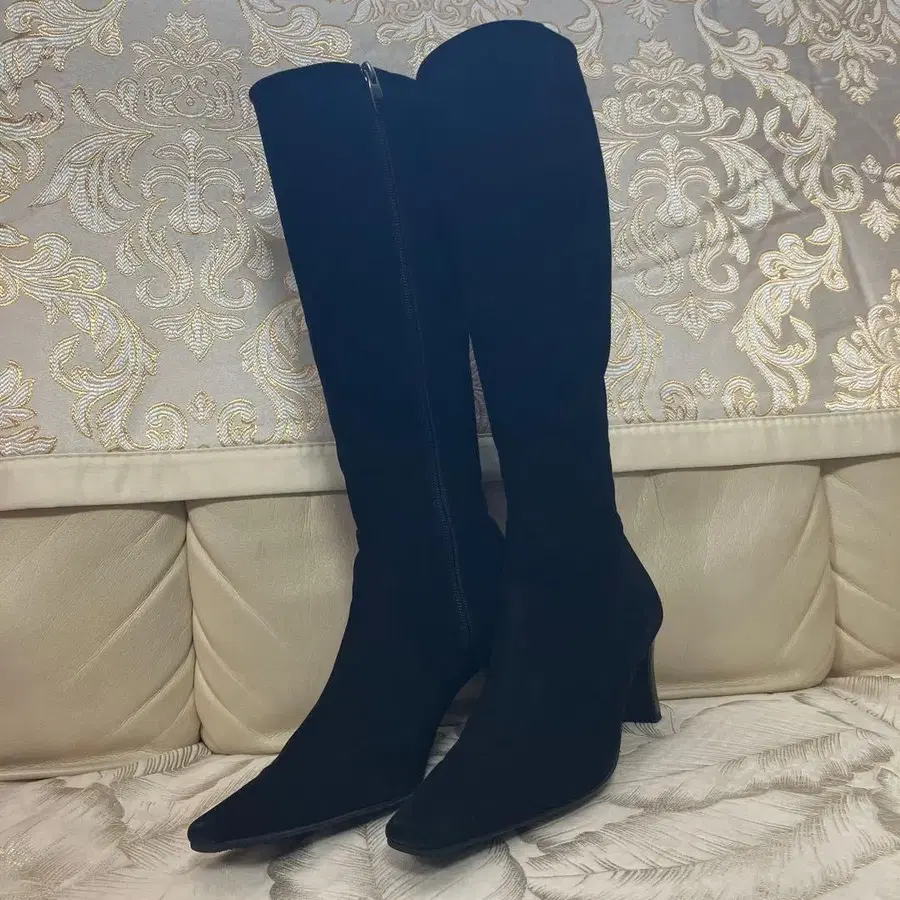 (새상품급!) 긴자 yoshinoya 23.5cm 블랙 스웨이드 롱 부츠