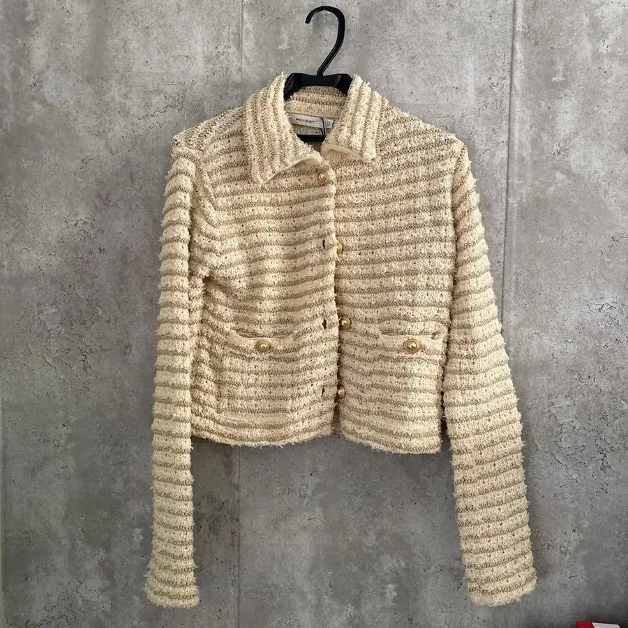금장 버튼 노카라 컴팩트 라메 니트 자켓 블랙 사이즈 1