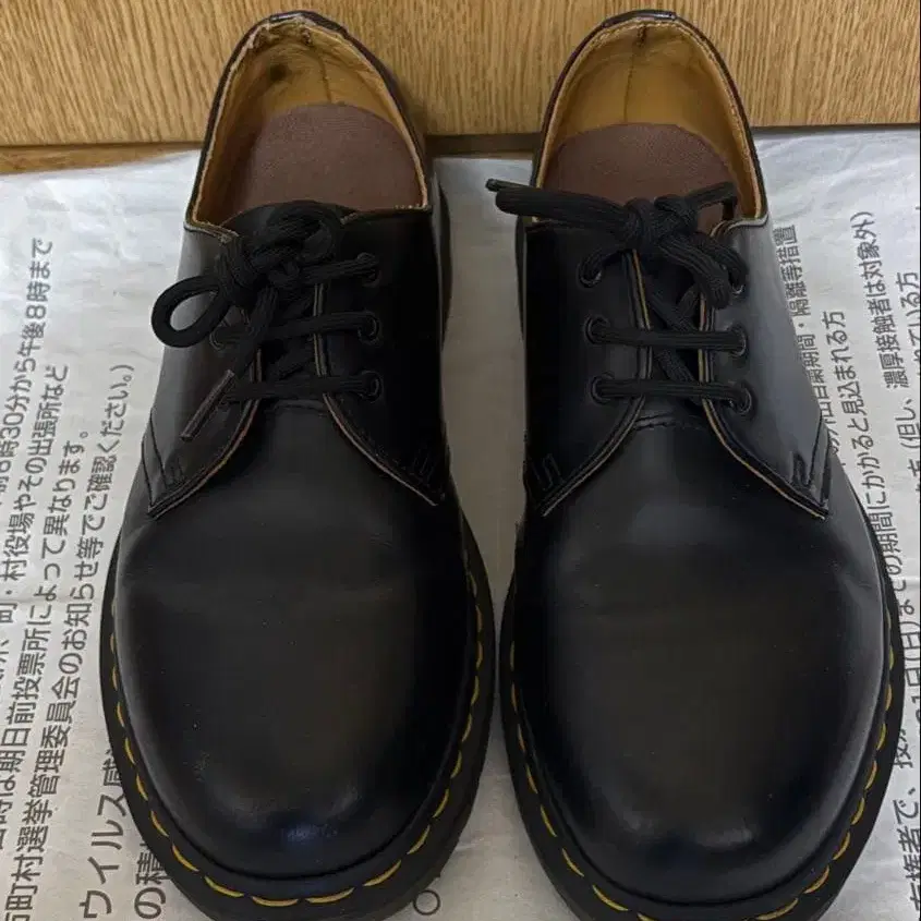 닥터마틴 3홀 사이즈는 UK 6, 일본 사이즈로 25 전후입니다. 약간의 사용감과 흠집은 있지만 많이 신지 않아 비교적 깨끗하며 아직 신으실 수 있다고 생각합니다. 상자 등은 없습니다.