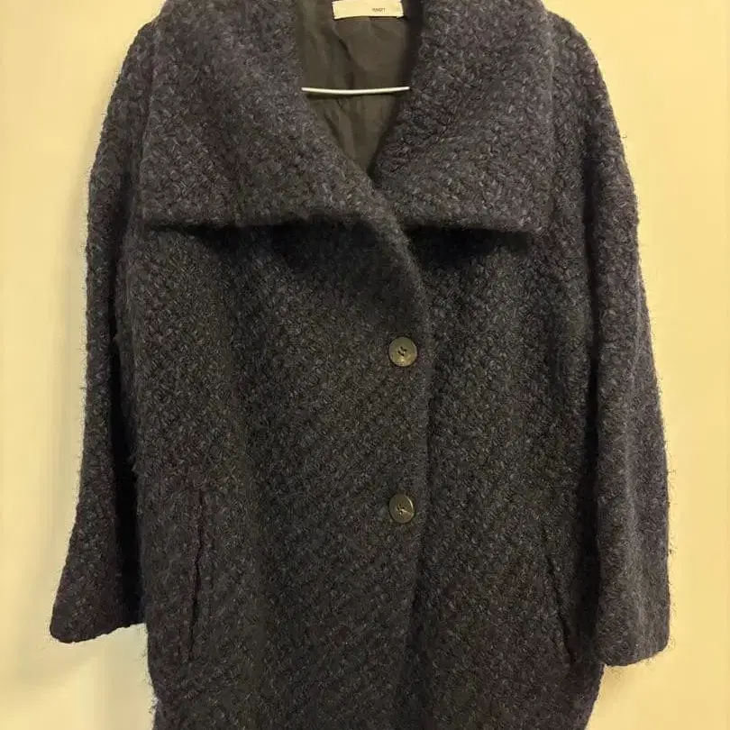 울 혼방 네이비 색상 오버사이즈 코트. 두께감 있는 방한 타입. - 색상: 다크 네이비와 블루의 뜨개질 - 디자인: 버튼이 있는 오픈 프론트 - 소재: 울 혼방 - 스타일: 오버사이즈 - 옷깃 디자인: 라펠 칼라 - 표기 사이즈: 1 - 어깨 너비: 약 40cm - 가슴 너비: 약 54cm - 기장: 약 83cm ※ 아마추어의 치수 측정으로 약간의 오차가 있을 수 있습니다. 변형 숄카라로, 스톨이나 머플러 없이도 멋스럽습니다. 방문해 주셔서 감사합니다. #tomorrowland