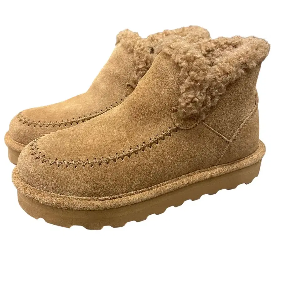 리본 퍼 통굽 숏 기장 어그 부츠 걸리시 24cm 카멜