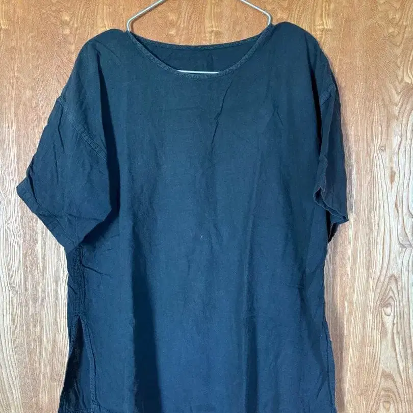 심플하고 넉넉한 블랙 반팔 티셔츠.