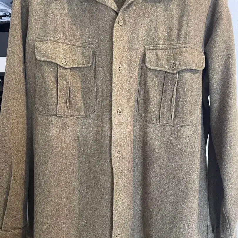 자동 번역되었어요. 원문보기재작년 연말 히로시마의 구제 의류점에서 10,000엔에 구매한 옛날 프랑스 군용 셔츠입니다. 가슴 포켓이 2개 달려 있고, 버튼이 유리로 되어 있는 점이 특징입니다.