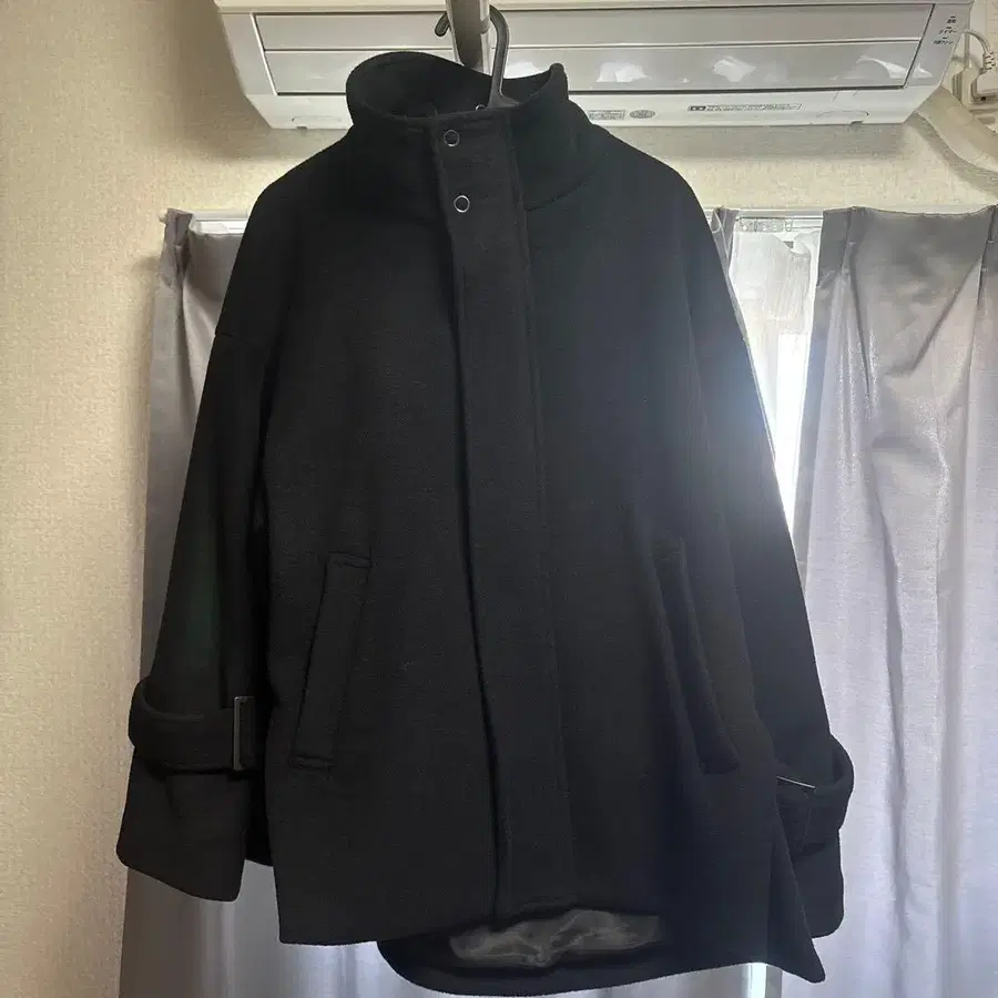 드로어 울 혼방 숏 기장 피 코트 블랙 일본제 M 사이즈