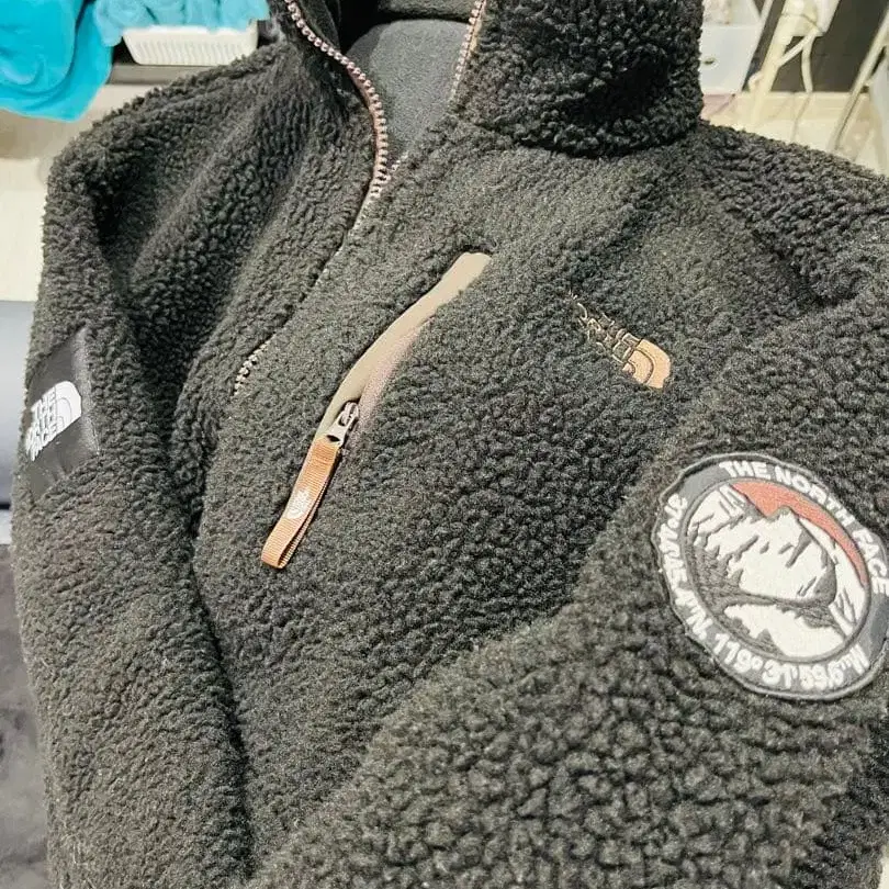 플리스 소재의 블랙 자켓, 집업과 가슴 포켓 부착. - 브랜드: THE NORTH FACE - 색상: 블랙 - 사이즈: L - 특징: 플리스 소재, 집업, 가슴 포켓 부착 방문해 주셔서 감사합니다. 색상 - 블랙 계열