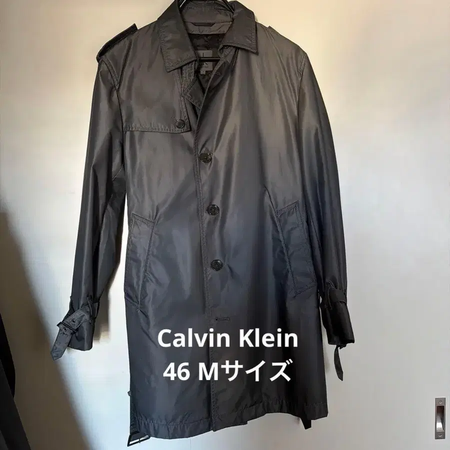 캘빈클라인 트렌치코트 라이너는 탈부착 가능합니다. 사이즈 46 M 사이즈 기장 85 (옷깃 아래부터), 가슴 너비 50cm, 소매 길이 61cm 정도 두께감이 있는 나일론 코트입니다. 소매나 옷깃에도 특별한 얼룩이나 올풀림 없이 상태가 좋다고 생각합니다.