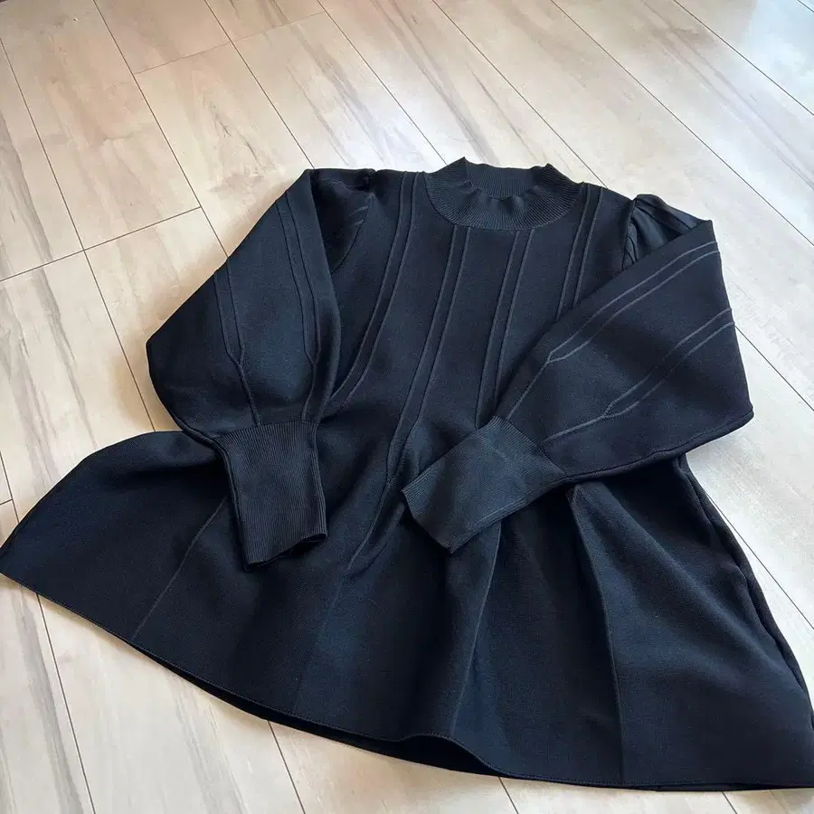 플레어 실루엣의 블랙 니트 폴리에스테르 100%로 쾌적한 착용감. - 색상: 블랙 - 소재: 폴리에스테르 100% - 사이즈: M-L - 디자인: 플레어 실루엣, 긴팔 방문해 주셔서 감사합니다.