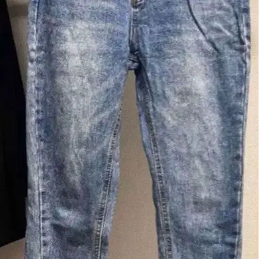 라이트 블루 스트레이트 데님, 하이웨스트에 페이드 가공이 특징.