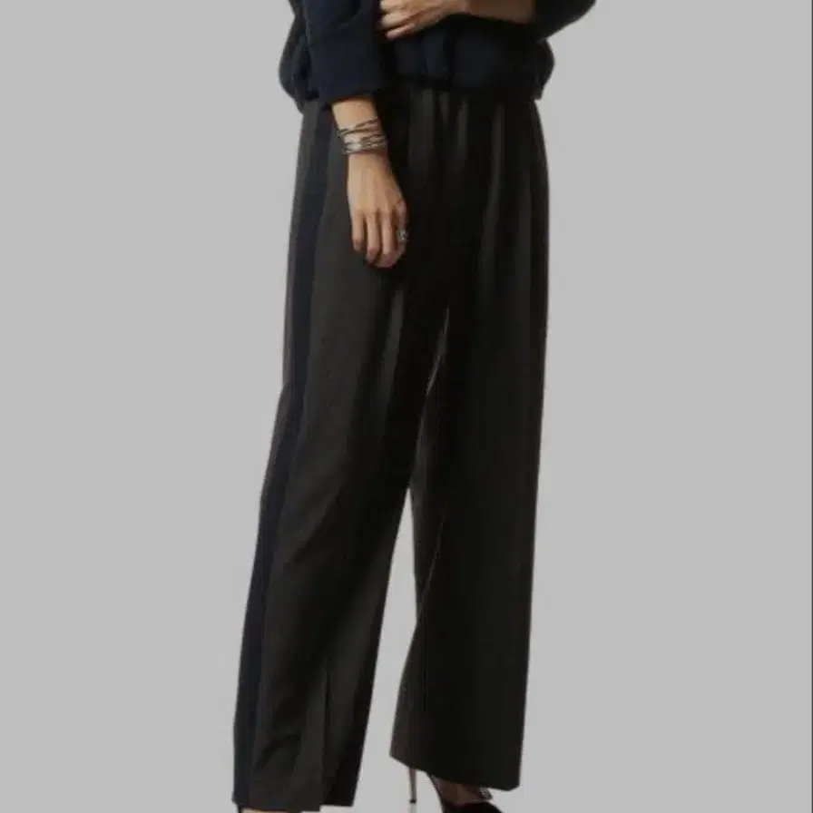 UNITED ARROWS ASTRAET 속쇼 와이드 팬츠 스테디셀러 이지 팬츠입니다. 0 사이즈입니다. 그레이에 네이비 라인입니다. 소재는 레이온, 폴리에스테르, 울, 폴리우레탄입니다.