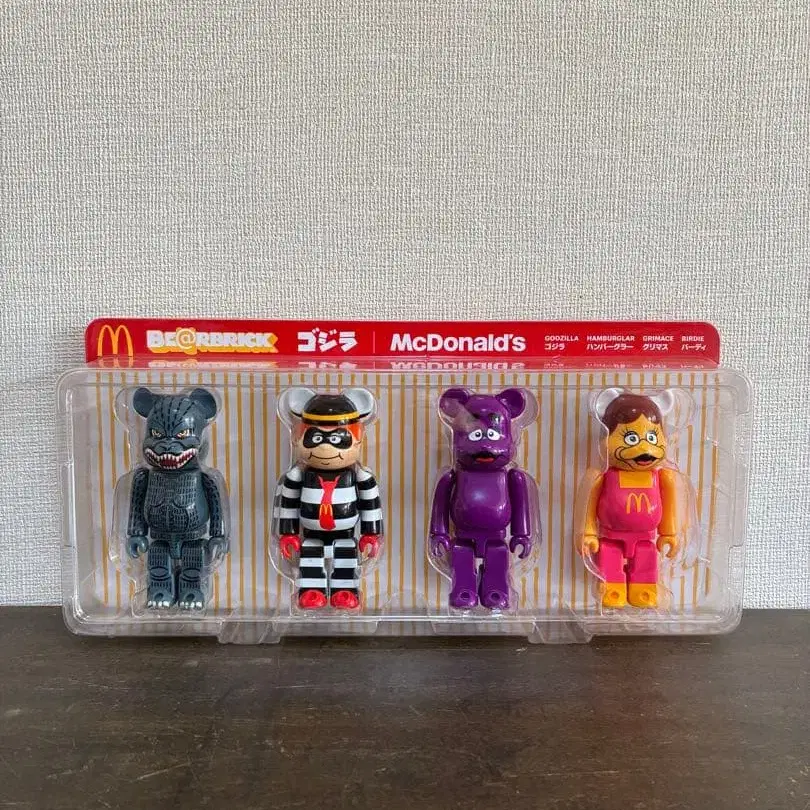 4체 세트의 BE@RBRICK 피규어, 고질라와 맥도날드 캐릭터가 모인 컬렉션. - 브랜드: McDonald's - 피규어 종류: BE@RBRICK - 캐릭터: 고질라, 햄버거러, 버거, 그리머스 - 수량: 4체 세트 - 패키지 상태: 미개봉 방문해 주셔서 감사합니다.