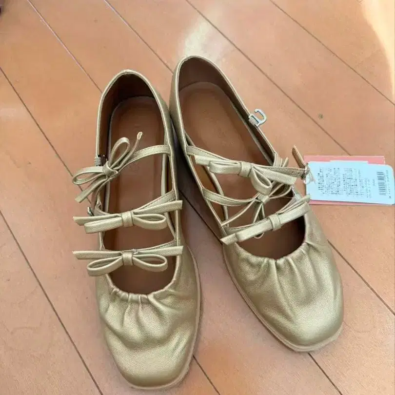 리본 포함 골드 플랫슈즈, 캐주얼 스타일에 최적. 미사용 새상품 골드 사이즈 23.5 시착만 한 상품, 택 포함 미사용 새상품 방문해 주셔서 감사합니다.