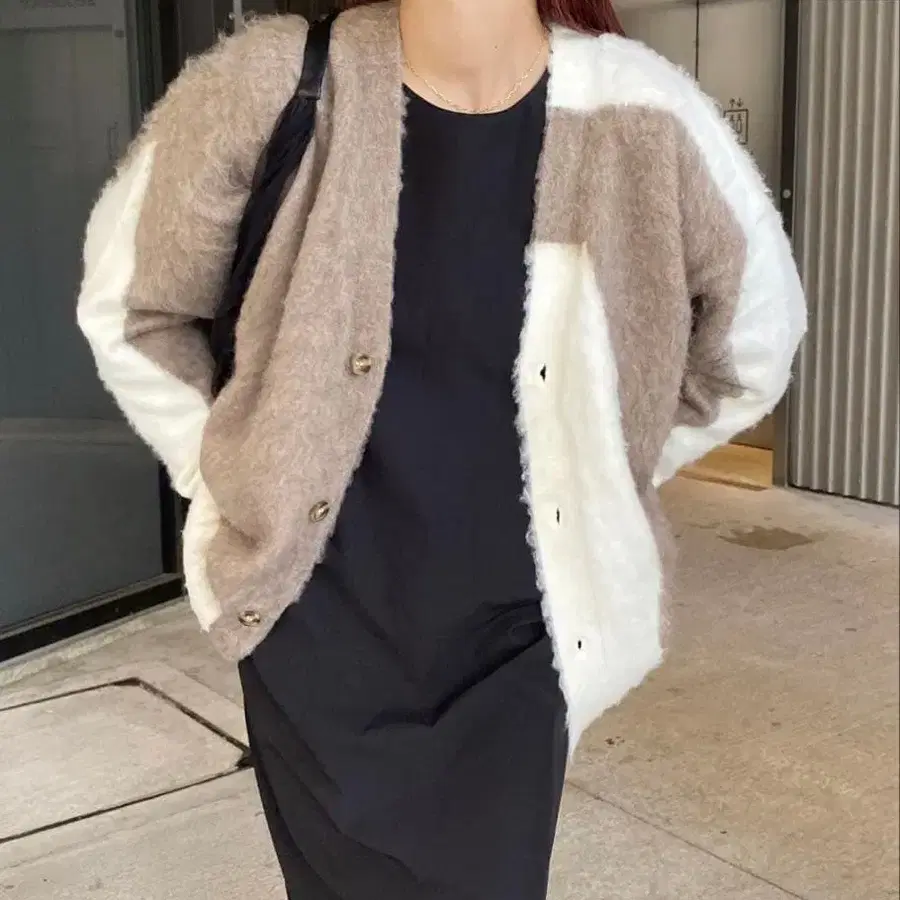 푹신푹신한 질감의 가디건이므로, 원래 니트 특유의 보풀이 있습니다.