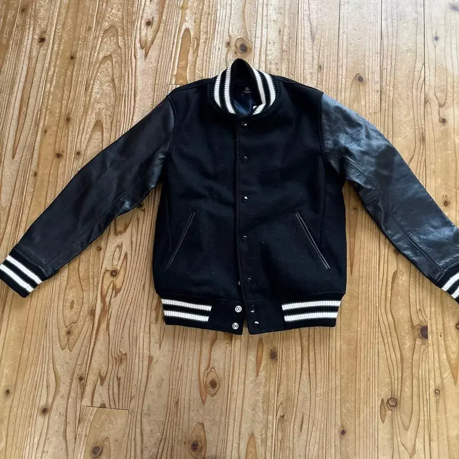 FLAT HEAD 바시티 자켓 네이비/블랙