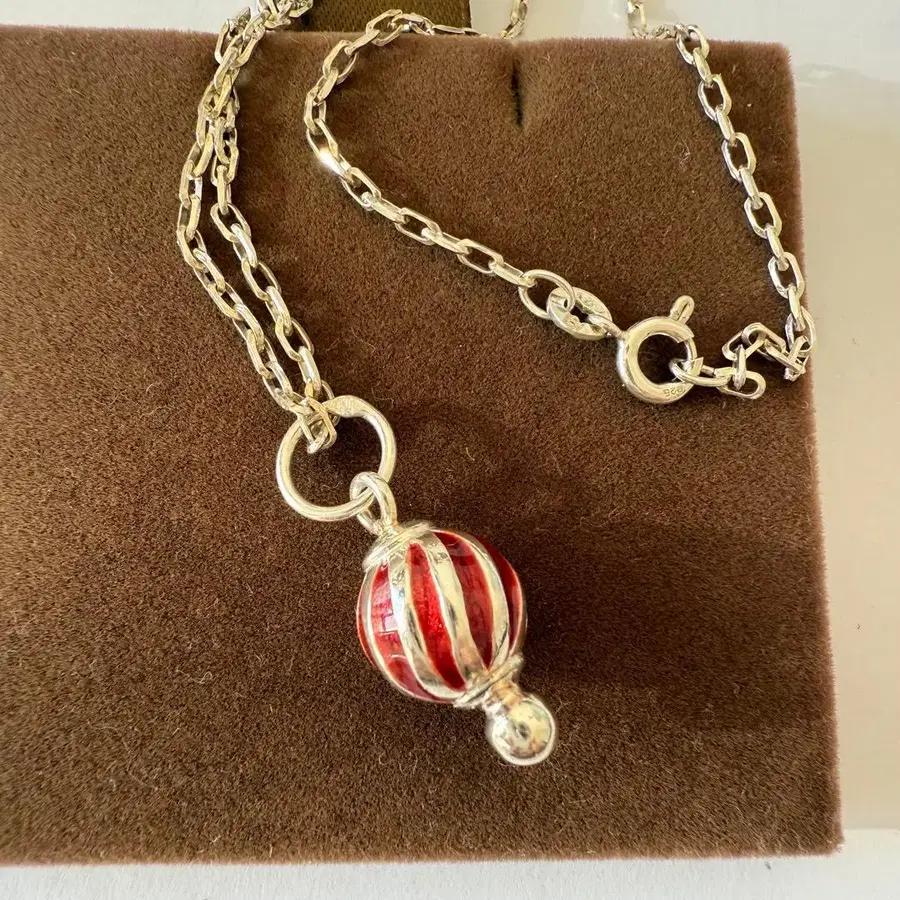 실버와 빨간색 스트라이프 무늬 볼 펜던트 목걸이. - 소재: 실버 (ITALY, 925 각인 있음) - 디자인: 스트라이프 무늬 볼 펜던트 - 색상: 실버와 빨간색 전체 길이 42cm 꼼꼼하게 포장하여 메루카리 택배로 발송해 드립니다. 잘 부탁드립니다. ☺︎