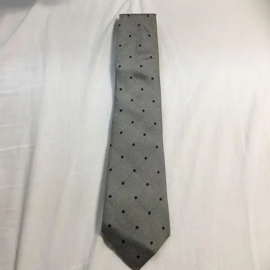 그레이 색상의 도트 무늬 넥타이, 안감은 파란색 바탕에 화이트 도트 디자인.