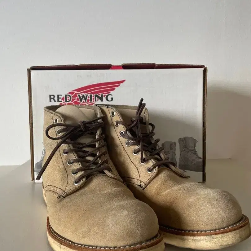 RED WING 스웨이드 소재 워크 부츠 - 브랜드: RED WING - 색상: 베이지 - 소재: 스웨이드 - 스타일: 워크 부츠 - 밑창 상태: 마모 적음 - 사이즈: 27.5cm